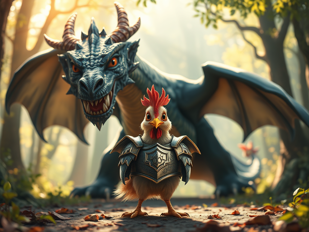 I usually have an idea in mind, or at least a few words that could be developed into a story. Years ago, while trying to come up with a concept for a children’s book, I imagined a small chicken wearing armor and fighting a fearsome dragon. The idea of an unlikely creature taking on a much bigger or stronger adversary isn’t exactly new, but there was something about this particular chicken that stuck with me. Still, I couldn’t figure out the details of the story, or how to write it in such a way that would do the character justice.